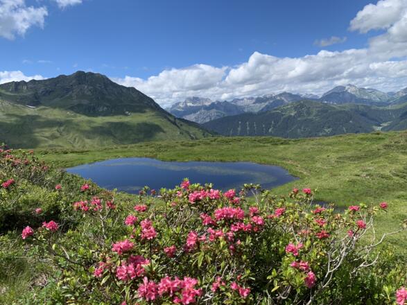 Recht anspruchsvoll, dennoch traumhaft schön und aussichtsreich: So lässt sich die Tour zur Alpguesalpe im Europaschutzgebiet Verwall am besten beschreiben. Vom Ausgangspunkt der Bergstation der Grasjoch Bahn geht's zunächst über ein Teilstück des Wormser Höhenwegs bergauf. Für Geübte Wanderer ist der Gipfel des Scheimersch ein Abstecher auf jeden Fall wert. Für diese Zusatzstrecke legst Du ca. 200 Höhenmeter zusätzlich zurück. Danach steigst Du wieder ab zum alpguessee und weiter zur Alpguesalpe. Dieser Rundweg führt Dich dann wieder zurück zur Bergstation der Grasjoch Bahn.