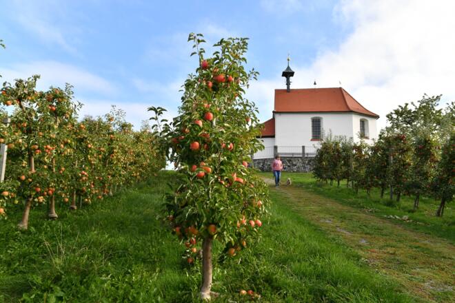 Die abwechslungsreiche Runde führt durch zahlreiche Obstanlagen und Schatten spendende Waldabschnitte und bietet zwei überwältigende Panoramaausblicke vom Antoniusberg und Winterberg. Vom Bahnhof geht es nordwärts der Bahnhofstraße folgend nach Hege. Wir wählen die erste Straße rechts nach dem Ortseingang und gelangen in die Obstanlagen des Hattnauer Priels (Übersichtstafel E, alternativer Parkplatz). Nach einer Bachquerung nehmen wir die erste Möglichkeit links in den Feldweg Richtung Hattnau, wo Obst- und Weinanlagen den Weg säumen. An den ersten Häusern von Hattnau und einer Straße angekommen, lassen wir das Feuerwehrhaus rechts liegen. Am Dorfbrunnen biegen wir rechts Richtung Selmnau ab. An der ersten Kreuzung in Selmnau folgen wir den Hügel hinauf. An der nächsten Gabelung rechts bergan bis zur Antoniuskapelle, die auf einem Moränenhügel thront. Von der einstigen Einsiedelei der Eremiten bietet sich uns ein Panoramablick auf den Bodensee sowie die Österreichischen und Schweizer Alpen, die seinesgleichen sucht. Zurück zur Übersichtstafel den Schotterweg bergab bis zu einer Gabelung folgen, hier links, am nächsten Wegweiser rechts Richtung Hengnau. Der nächsten Möglichkeit rechts nach Hattnau folgen. An der Fahrstraße angekommen biegen wir rechts und sofort wieder links in den Feldweg, in Richtung Aussichtspunkt Winterberg, ab. Nach Durchquerung des Schatten spendenden Waldes erreichen wir den Aussichtspunkt Winterberg mit weitläufigem Panoramablick. An der Gabelung links und die nächste Möglichkeit rechts Richtung Wasserburg. Nach dem nächsten Waldabschnitt links und gleich wieder rechts in Richtung Bruggach (Übersichtstafel C und Parkplatz am Sportplatz Hege). Im Wald immer den Wegweisern Richtung Wasserburg folgen bis zur Fahrstraße. Hier links halten. Nach 100 m rechts durch die Obstanlagen am nahe gelegenen Naturschutzgebiet Mittelseemoos. An der nächsten Gabelung links bergauf wieder Richtung Ausgangspunkt.
