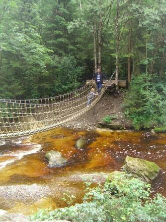 Erlebt ab dem Gasthaus Waldschenke auf rund 2,5 Kilometer den Wasserspielplatz, ein Baumhaus, die Hangrutschen, das Schwingseil, die Hängebrücke und viele weitere Attraktionen für Kinder und Junggebliebene.