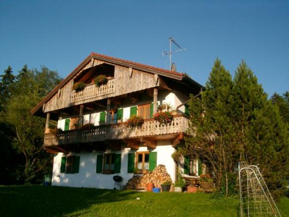 Gemütliche Ferienwohnung im Dachgeschoss mit Balkon und herrlichem Ausblick über das Loisachmoor. Liegewiese, Kinderspielplatz, Tischtennis, Ganzjährige Vermietung.