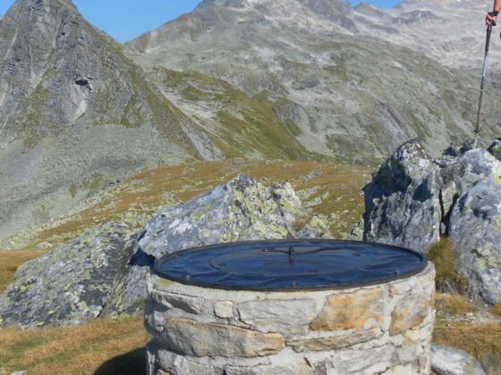 Vom großen Parkplatz an der Kölnbreinsperre geht es auf der Schotterstraße zum Kölnbreinstüberl. Hinter dem Schranken wandern (oder biken) wir auf der Schotterstraße über eine Anhöhe entlang des Nordufers des Stausees bis zur markanten Gedenkkapelle. Unmittelbar danach zweigt rechts der Wanderweg 502 in die Südflanke ab. Kurz oberhalb der Jagasteighütte verzweigt sich der Pfad. Links geht es zur Arlscharte (unser Abstieg), rechts wird die steile schrofig-grasige Südflanke unter dem Marchkarspitz hinaufgewandert. Nach einer karartigen Abflachung und einem grobblockigen Geröllfeld queren wir nach rechts zur Marchkarscharte hinauf (kein Wegweiser, aber Markierungen in zwei Richtungen!). Wir folgen jenen ostwärts. Es werden mehrere Felsrippen und plattige Mulden überquert. Wir steuern nun die markante Südwestflanke des Weinschnabels an. Hier liegen auch über den Sommer evtl. ausgedehnte Firnfelder. Der Gipfelaufbau ist grobblockig bzw. felsig. In leichter Kraxelei wird über Felsbänder und kurze Blockrinnen schnell das geräumige Gipfelplateau des Weinschnabels mit kleinem Kreuz erklommen.