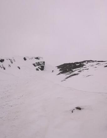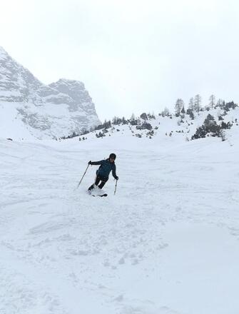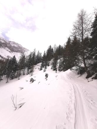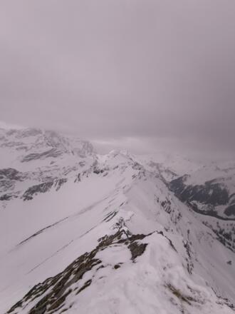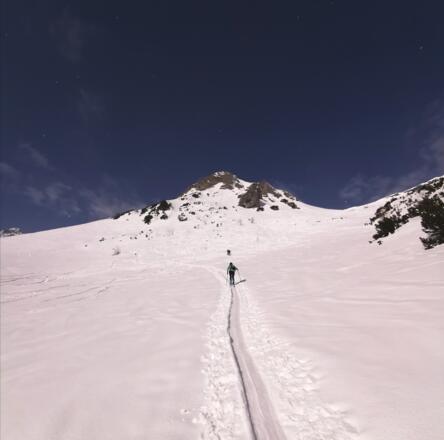 Besondere Vorsicht und Lawinenkenntnis im Gipfelhang erforderlich.
