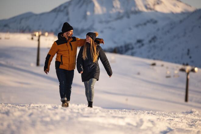 Sie können kostenlos auf dem Parkplatz P5 (Parkplatz Gamsleiten) bzw. auf der Passhöhe parken. Von beiden Parkplätzen ist es nur ein kurzer Fußmarsch bis zum Winterwanderweg.