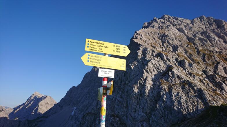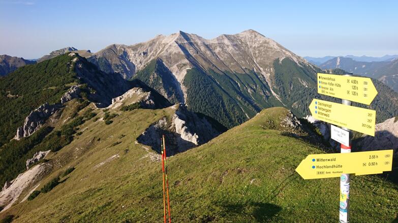 Von Mittenwald über die obere Kälberalm und Hochlandhütte zum Wörnersattel. Über den Wörnergrat gehts über felsigen Grat, Schrofen und Platten zum Gipfel!
