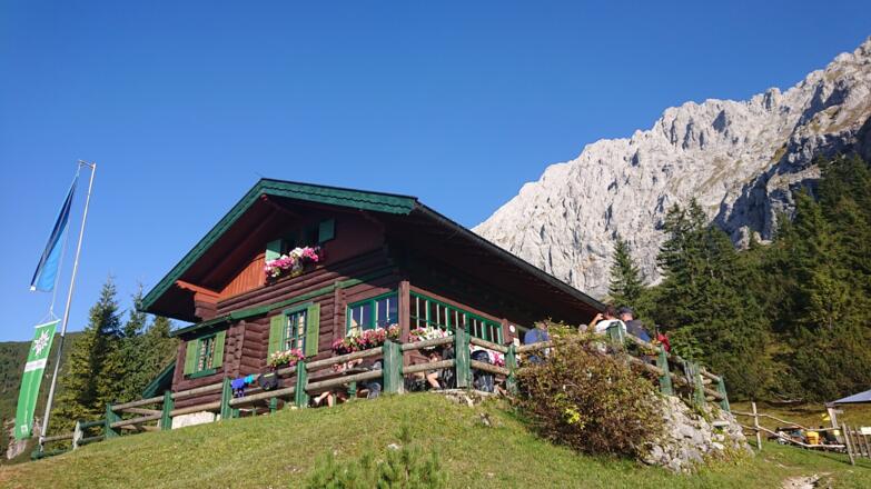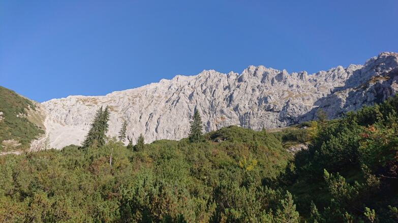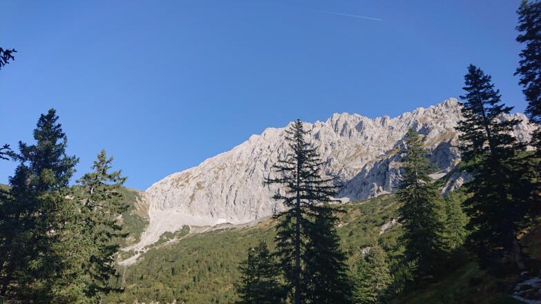 Im Abstieg habe ich eine Variante über die untere Kälberalpl (Nr. 262A) gewählt um nicht an der B2 zurücklaufen zu müssen. Es geht dann zuerst nochmal links Richtung Dammkar Hütte hinauf um dann gleich später Richtung Dammkar Forststraße nach rechts auf einen kleinen Pfad in den Wald zu gehen. Der Nachteil davon es geht nochmal ein paar Meter aufwärts :-).