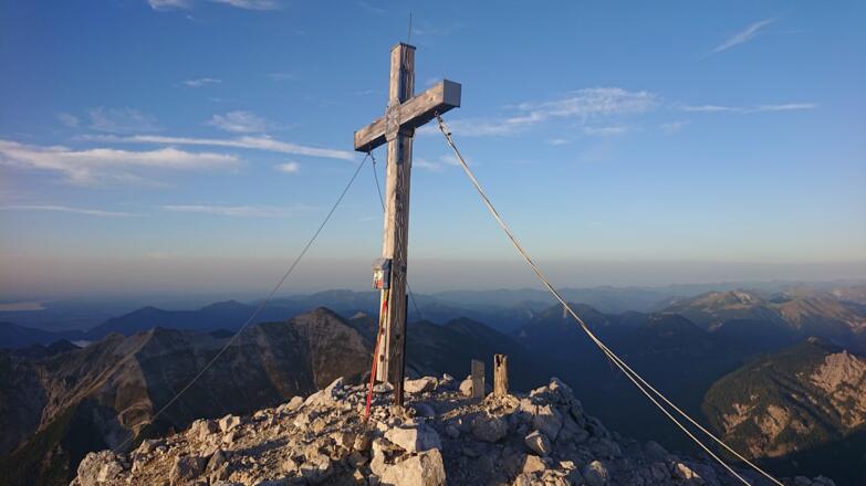 Schöne Klettertour (II-) auf einen der markantesten Gipfel der vorderen Karwendelkette. Sehr lohnend, doch nur für geübte und trittsichere Bergsteiger!