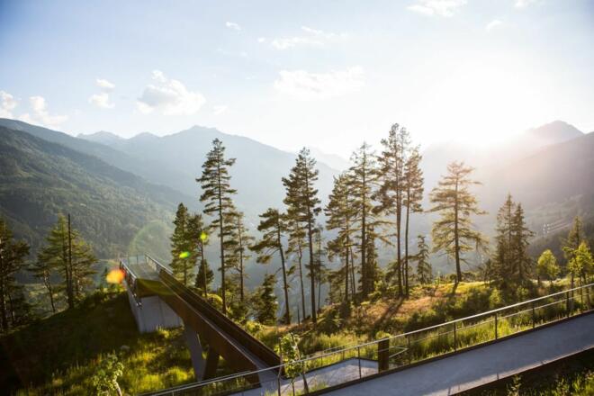 Der faszinierende und relativ leicht zu fahrende Trail führt vom Schloss Landeck entlang der Via Claudia Augusta und über die Fließer Platte bis Fließ. Von dort führt ein steiler Schotterweg hinauf zur Pillerhöhe, wo das Naturparkhaus zur Rast mit beeindruckenden Aussicht einlädt.