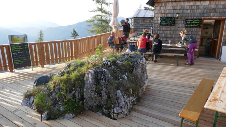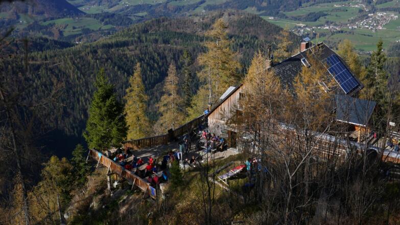 Von der gemütlichen Gaststube (für ca. 50 Personen) und denTerrassen aus erlebt man einen herrlichen Ausblick auf die zum"Nationalpark O.ö. Kalkalpen" gehörenden Gipfel des Sengsengebirgesund des Reichraminger Hintergebirges, auf die Gebirgskette des Toten Gebirges(Kl. u. Gr. Priel, Spitzmauer ...), sowie ins Stodertal und WindischgarstnerTal.
